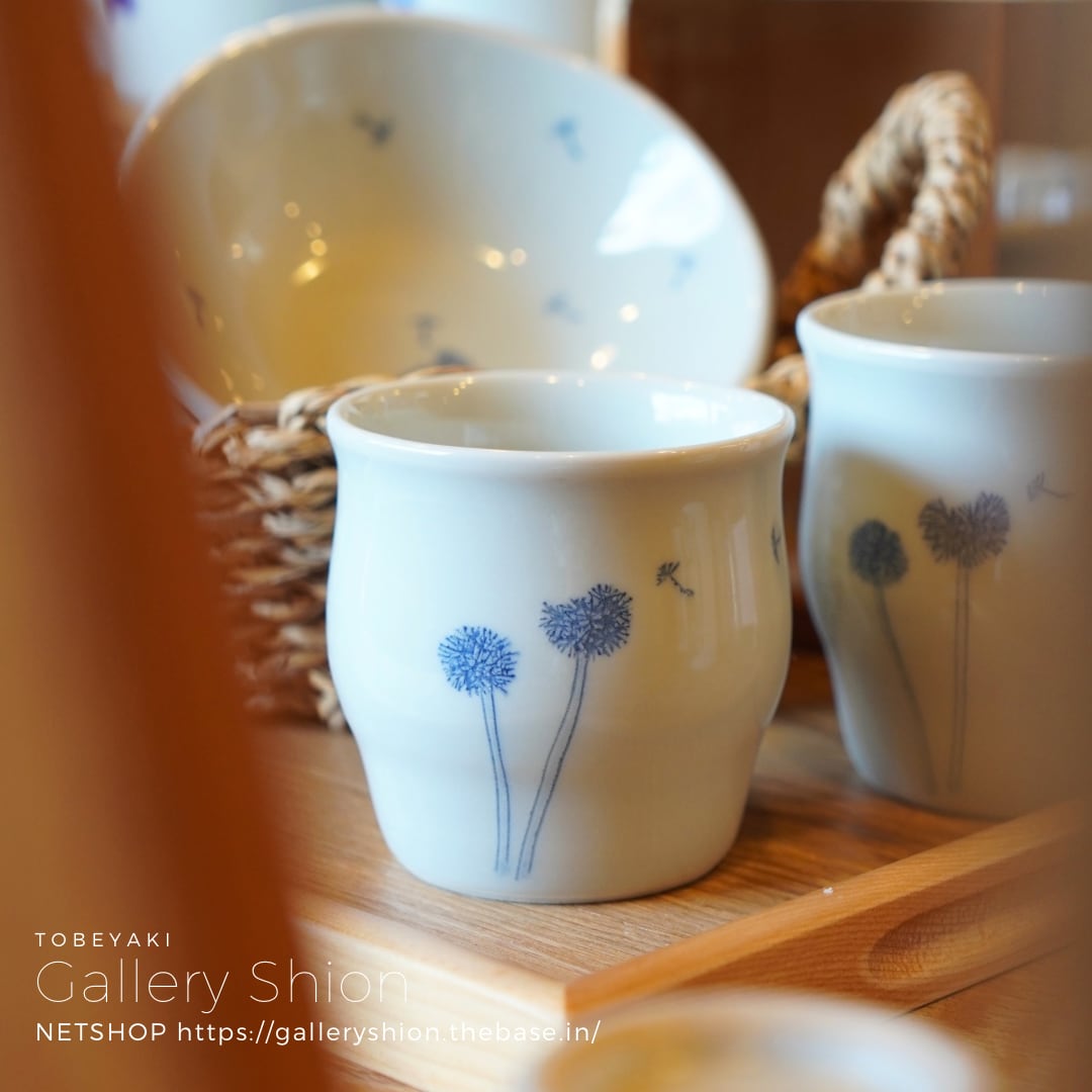 砥部焼窯元陶房風さんの 綿毛まで細かく針彫りという技法で 模様付けられたたんぽぽが とてもかわいい湯呑(大)。 ・砥部焼窯元/陶房風 ・素材/磁器 ・size/Φ8.2cm h約8.4cm ・電子レンジ/○ ・食洗機/○ ※手作りの為、 個体差がありますのでご了承下さい。 ※ギフトラッピングについて https://galleryshion.thebase.in/p/00002