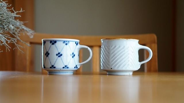 コーヒーカップ2種、輪花鎬皿3サイズ、