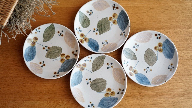 特徴的な角小皿も木の葉柄