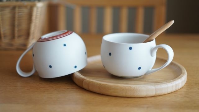 水玉模様の丸マグ2種です。