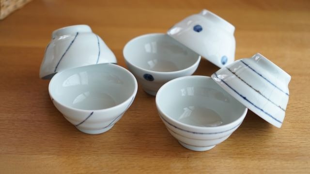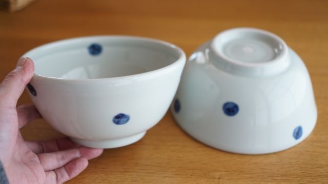 丼の小サイズは線と水玉の