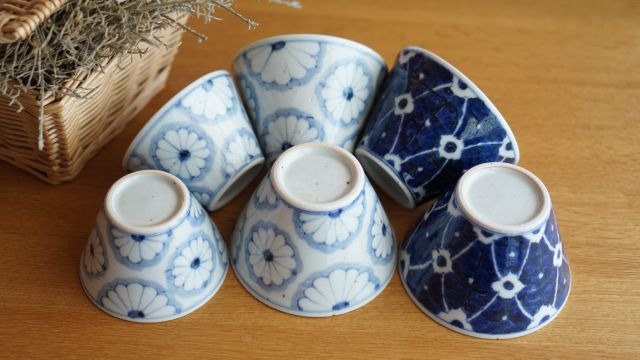 小鉢(大)は菊文、染付花の