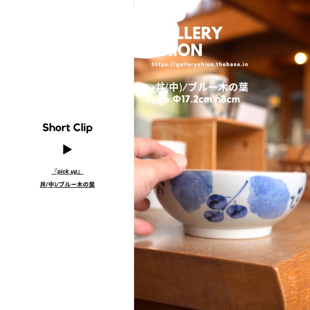 (▶︎)丼(中)/ブルー木の葉up! | 砥部焼ギャラリー紫音