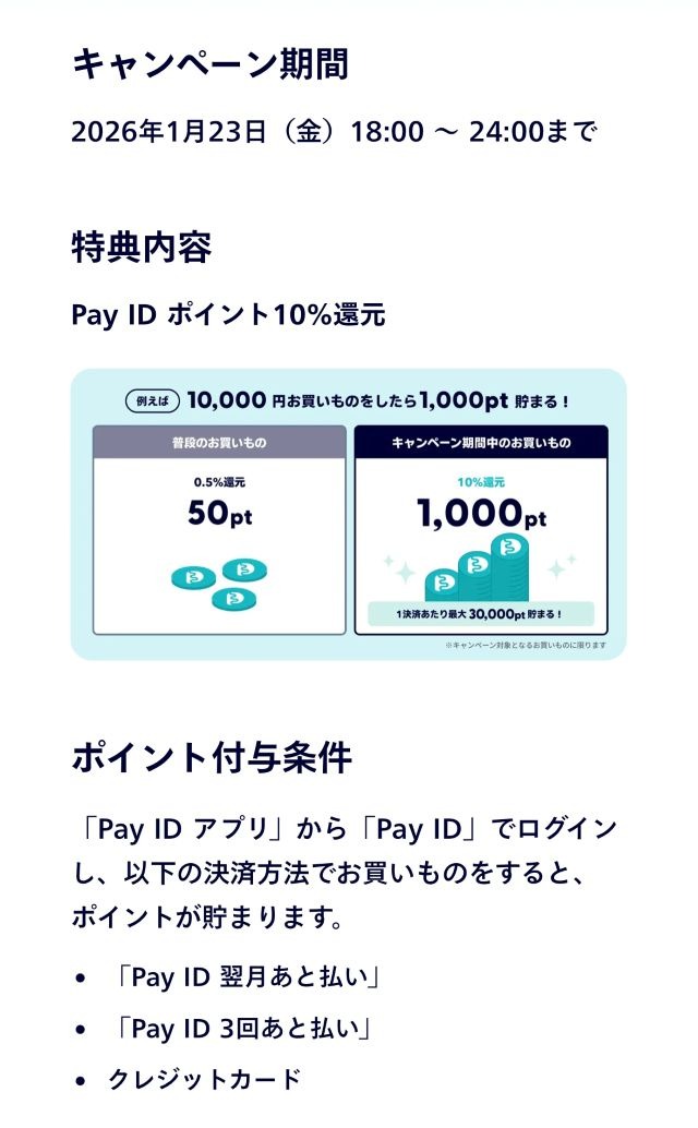 Pay IDアプリ限定キャンペーン
