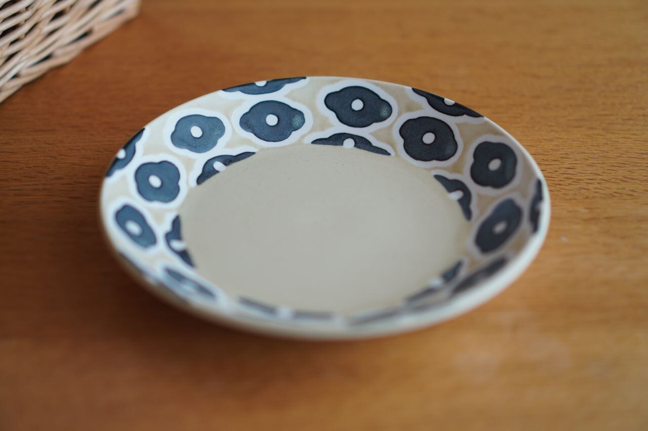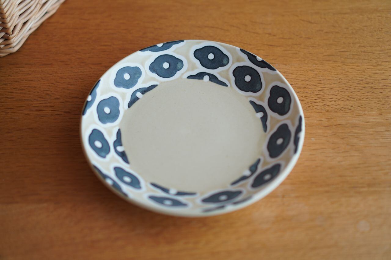 砥部焼/丸皿(小)/インディゴフラワー/すこし屋