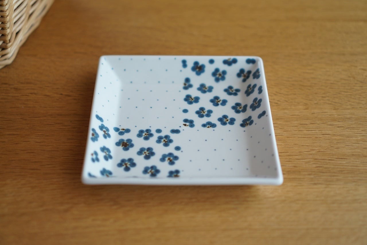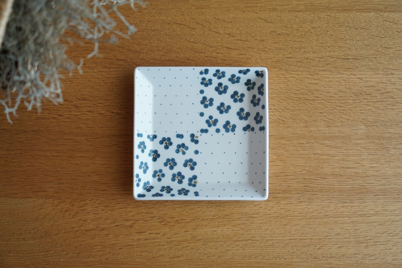 四角皿(大)/青ドット×青小紋。
