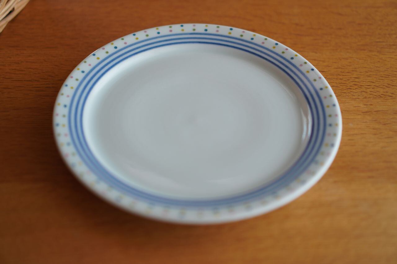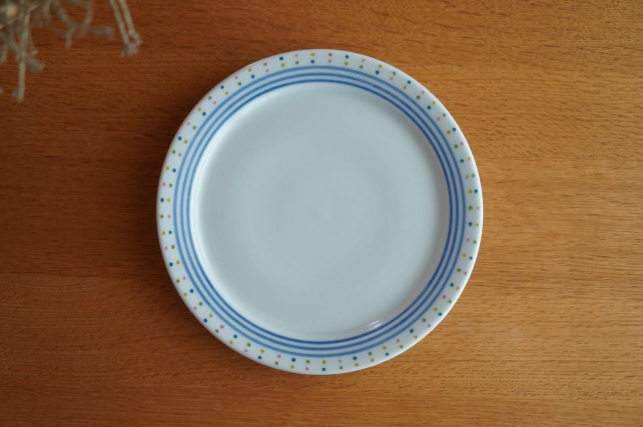 砥部焼/6寸リム皿/カラフルドットボーダー/皐月窯
