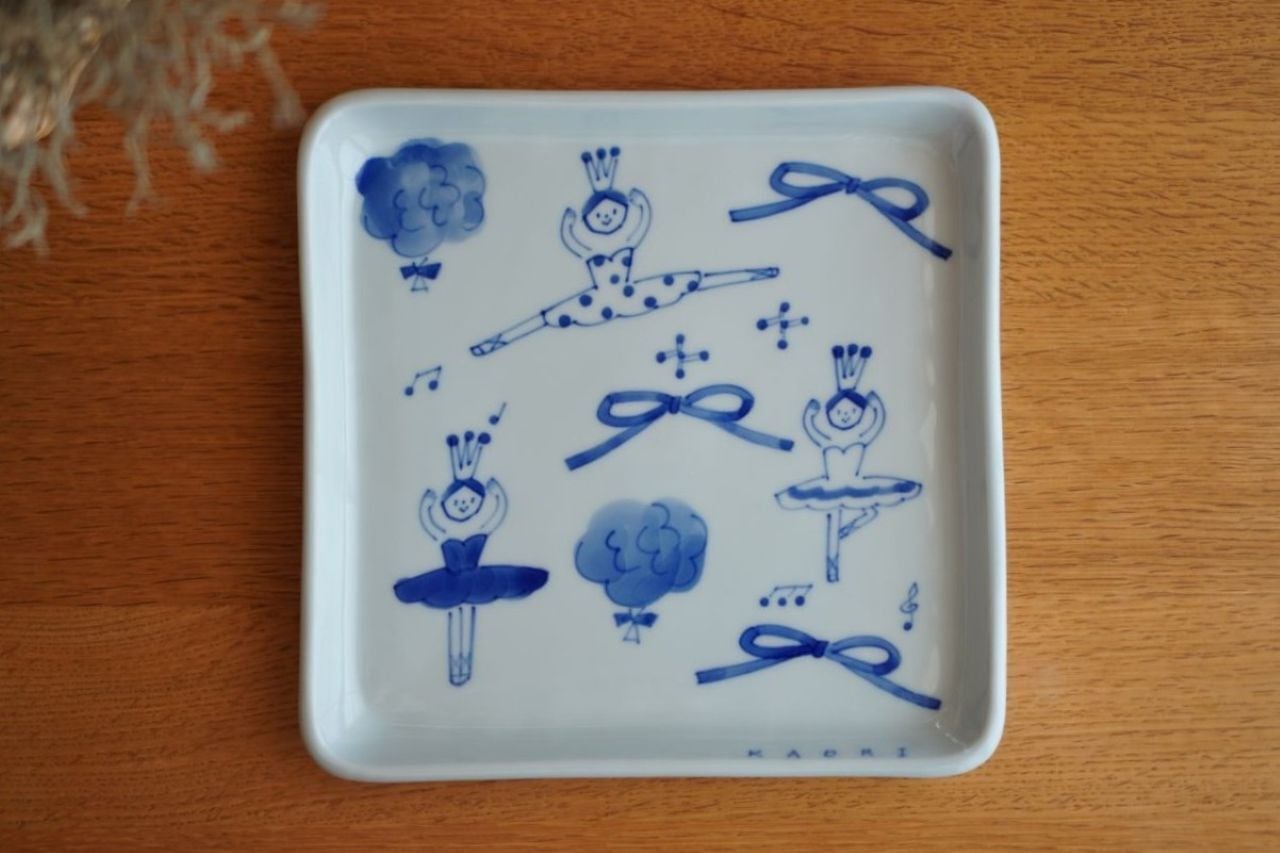 砥部焼/角皿(特大)/バレリーナ//森陶房kaori