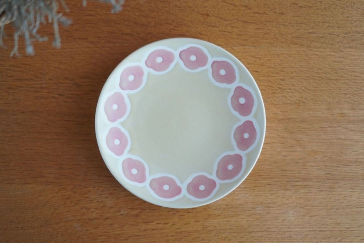砥部焼/5寸皿/ピンクフラワーb/すこし屋