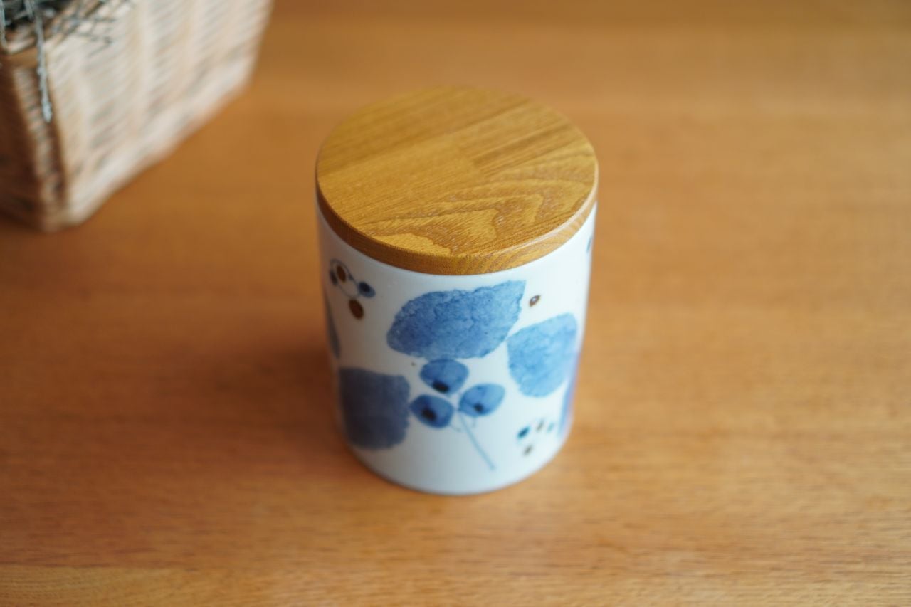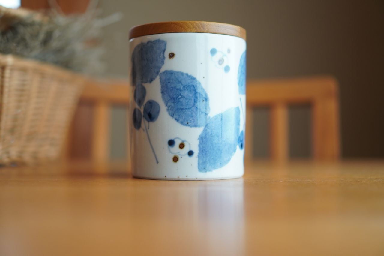 砥部焼/キャニスター/ブルー木の葉/森陶房