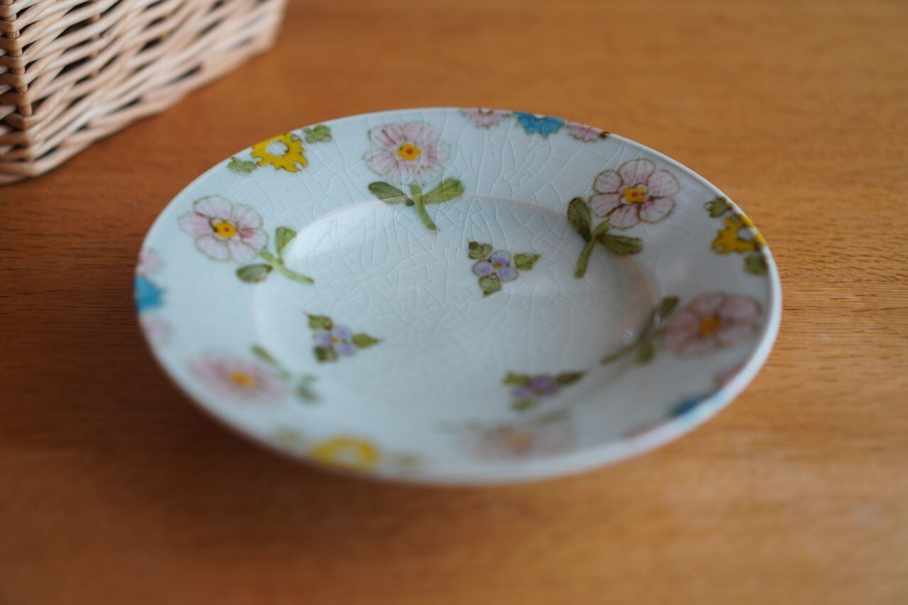 砥部焼/5.5寸縁付皿/色絵花ちらし/皐月窯