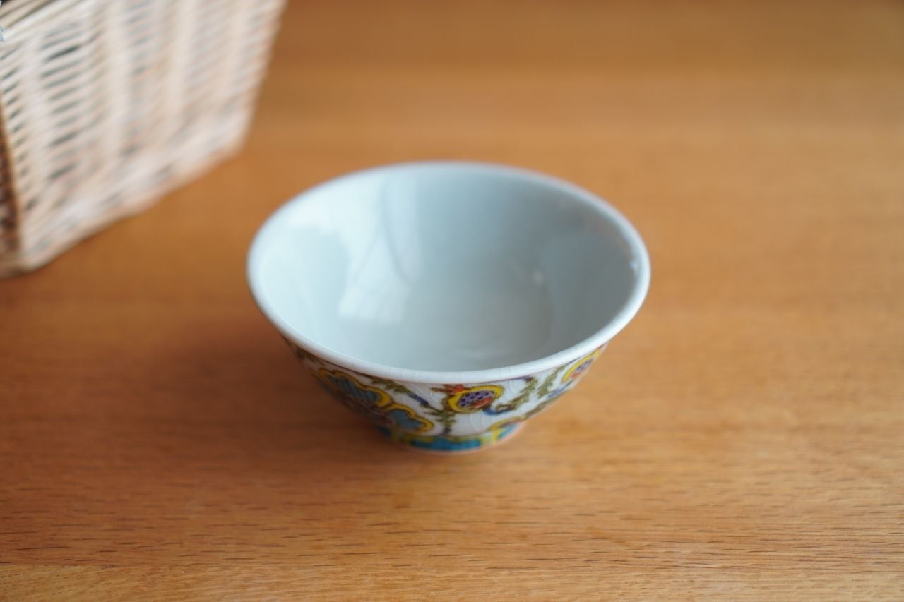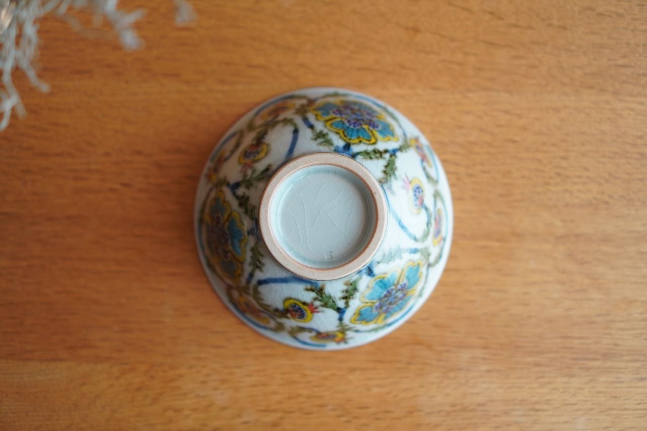 砥部焼/茶碗(大)/色花絵唐草/皐月窯