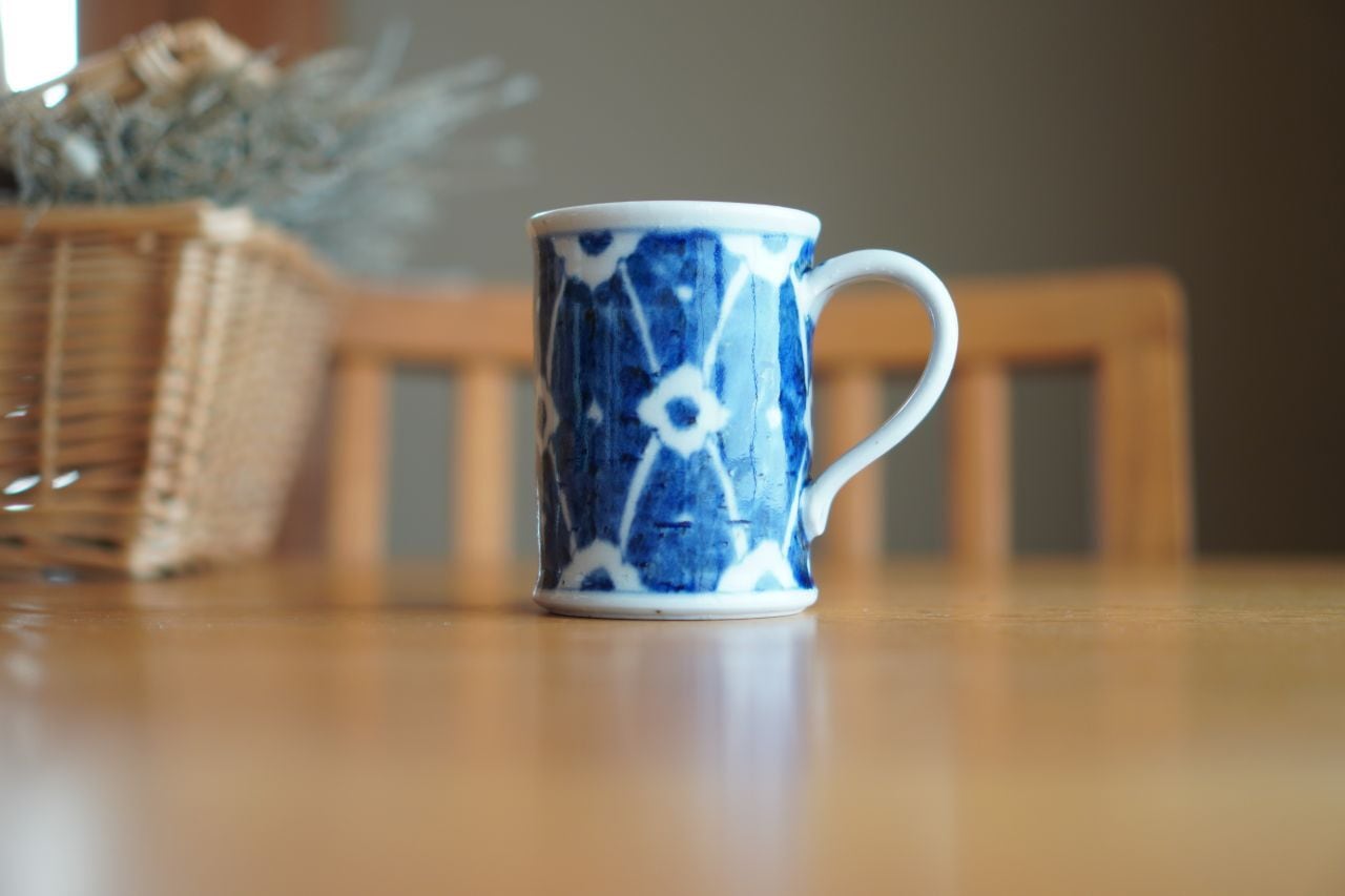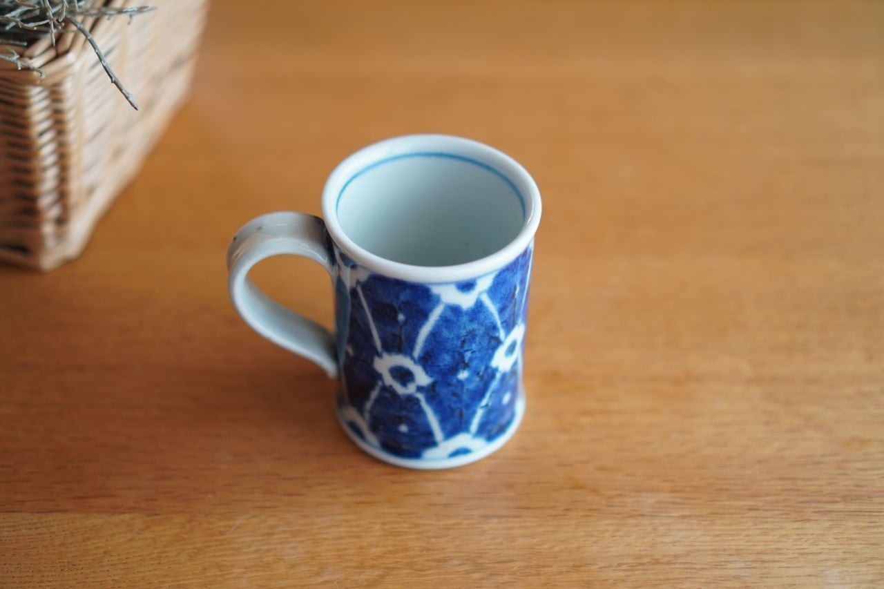 砥部焼/筒型マグカップ/染付花/皐月窯