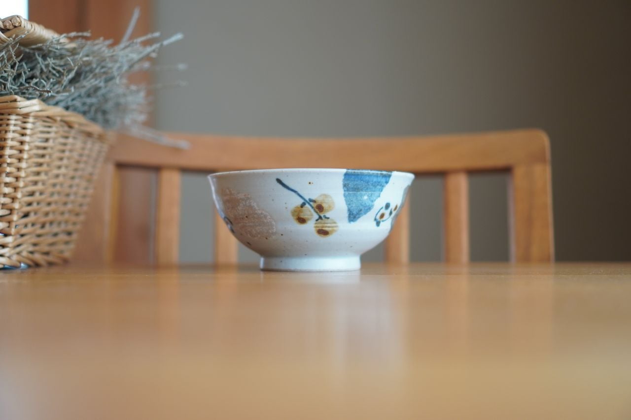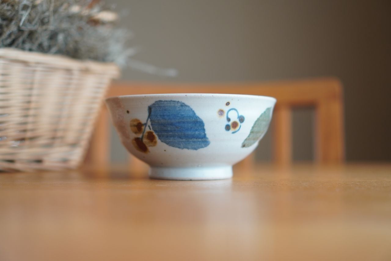 砥部焼/ろくろ目茶碗/木の葉/森陶房