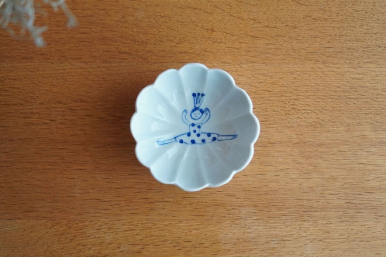 砥部焼/輪花小鉢/バレリーナ水玉/森陶房Kaori