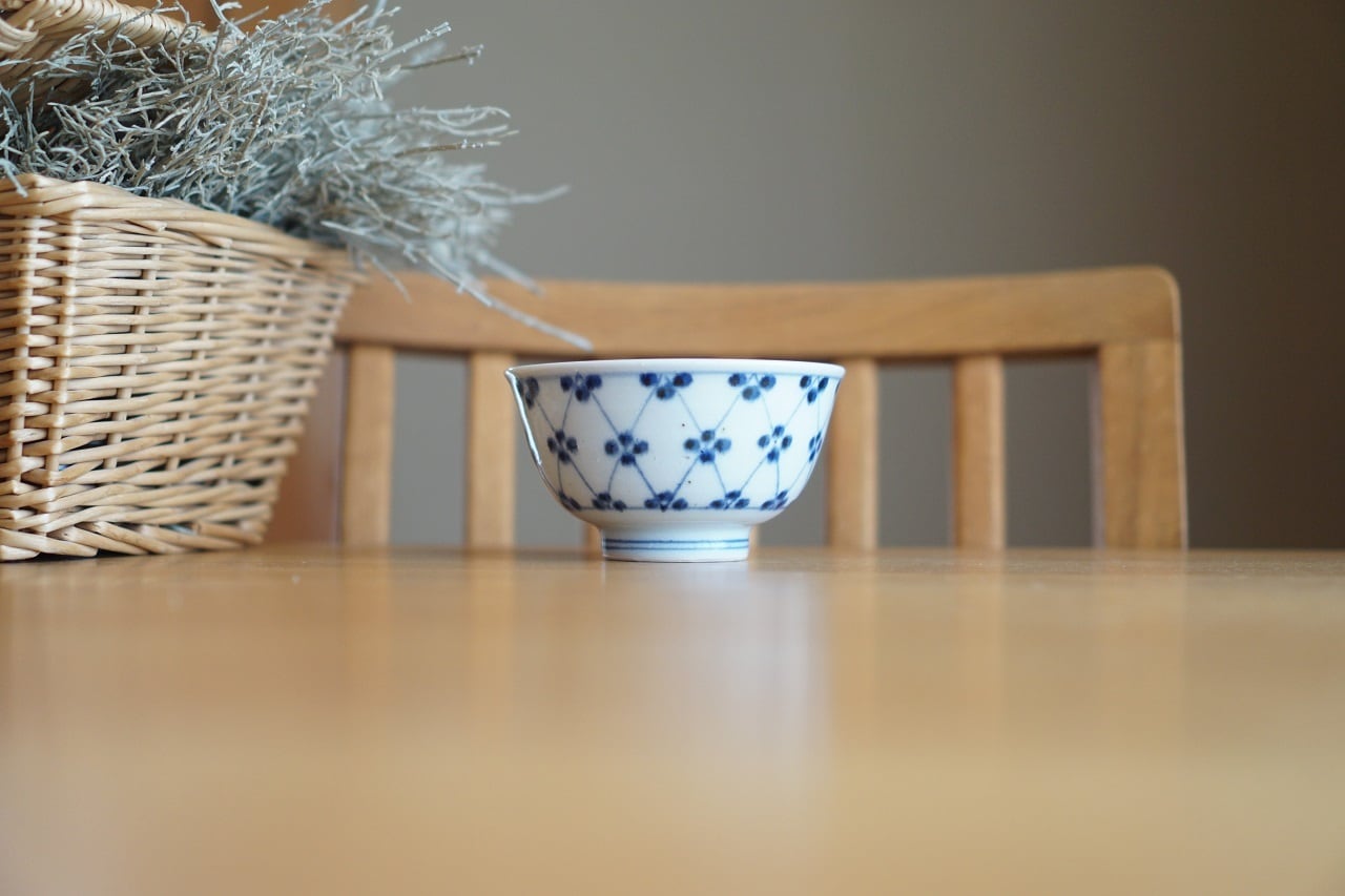 砥部焼/お茶碗/梅文/皐月窯
