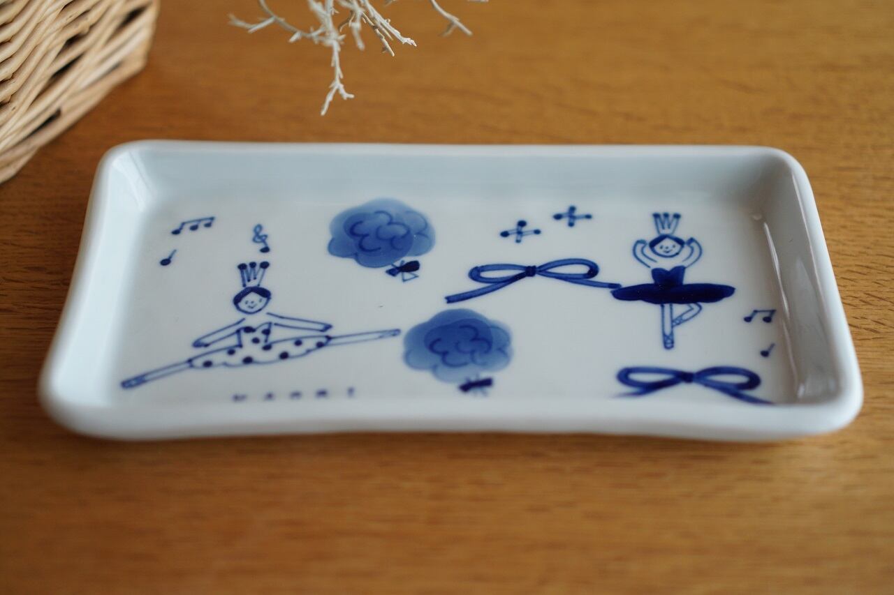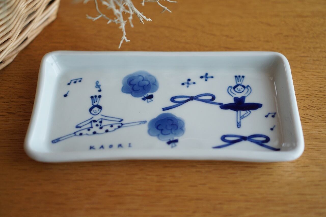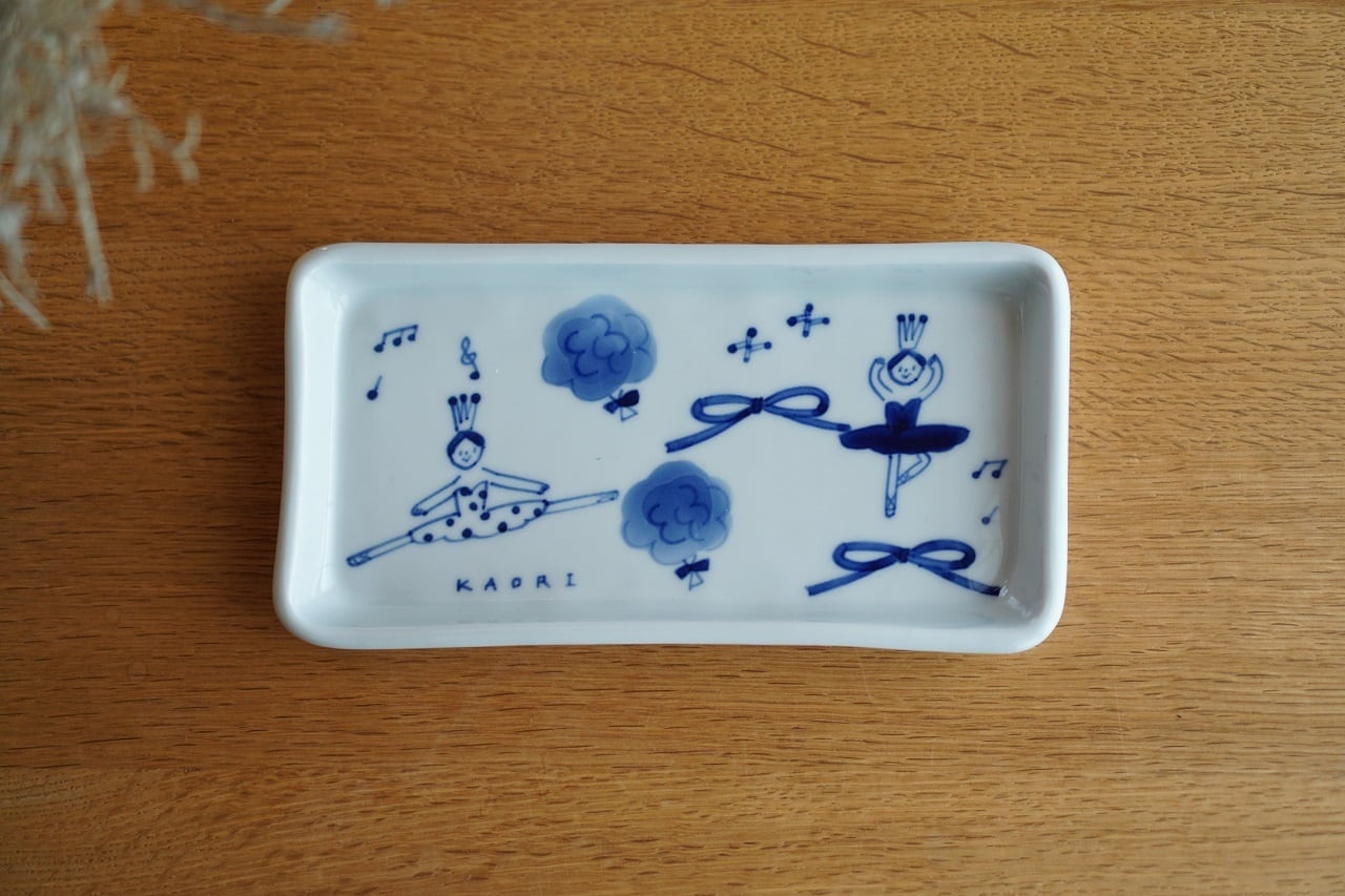 砥部焼/長板皿(大)/バレリーナ/森陶房kaori