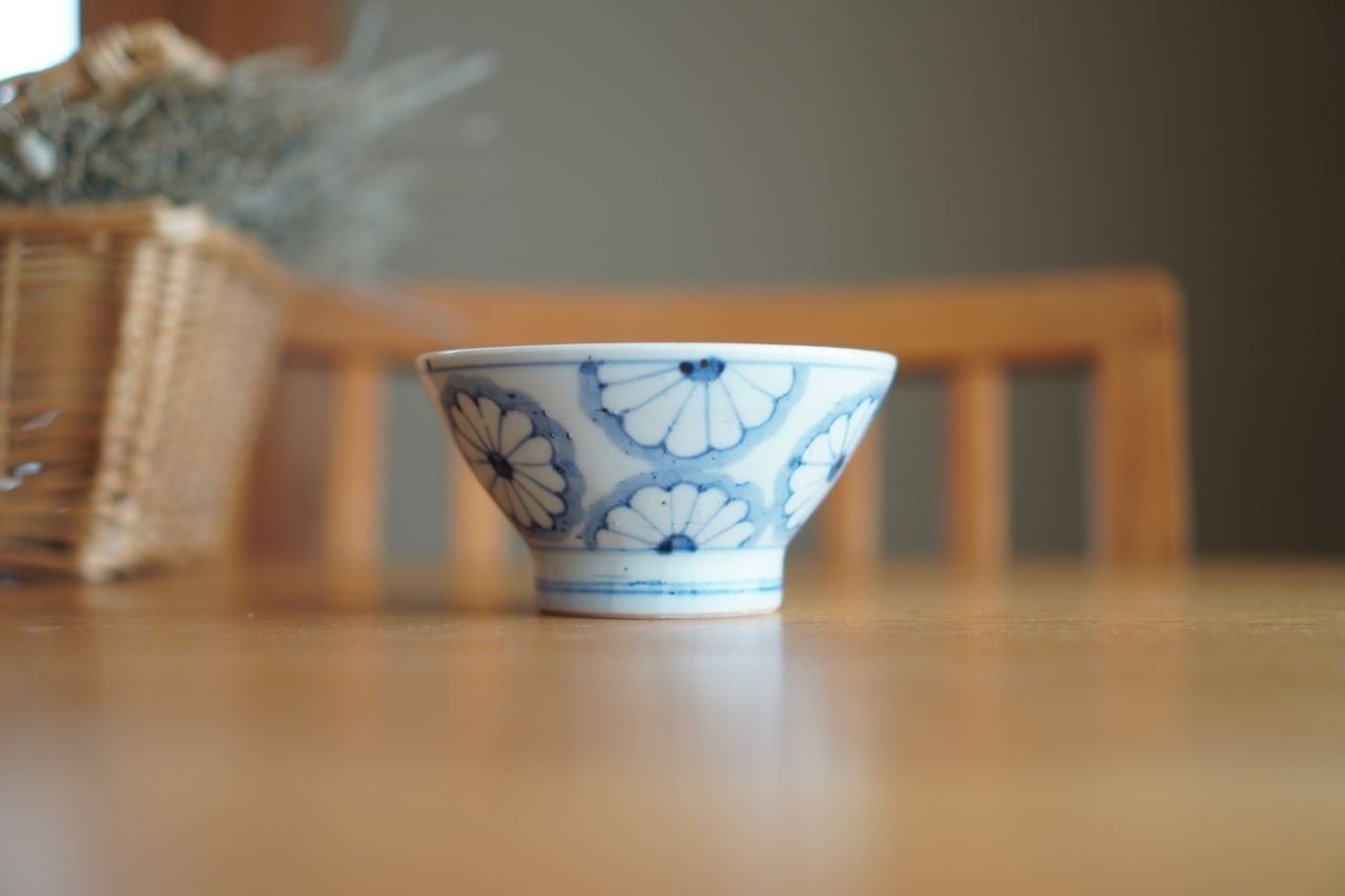 砥部焼/くらわんか茶碗/菊文/皐月窯