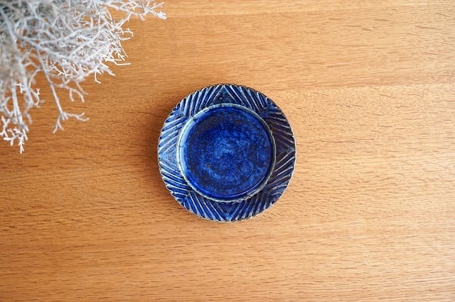 4寸リム皿/呉須巻鎬ヘリンボーン。