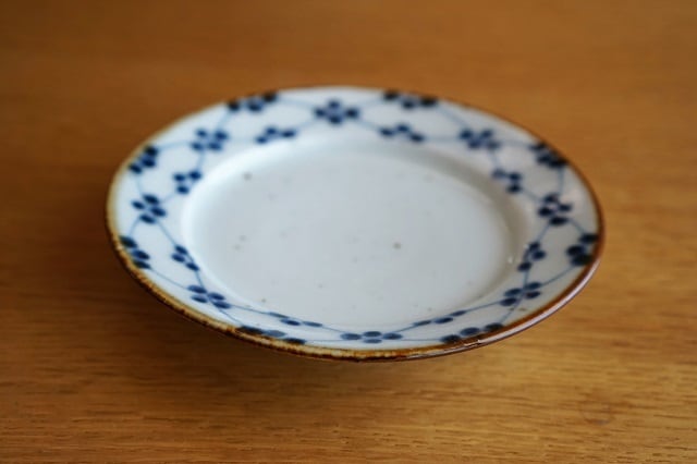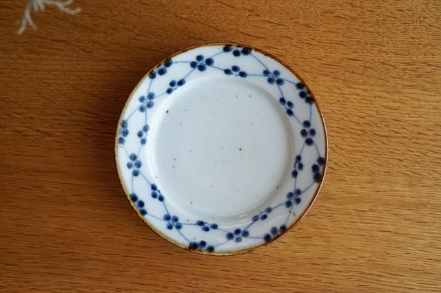 砥部焼/4寸リム皿/梅文/皐月窯