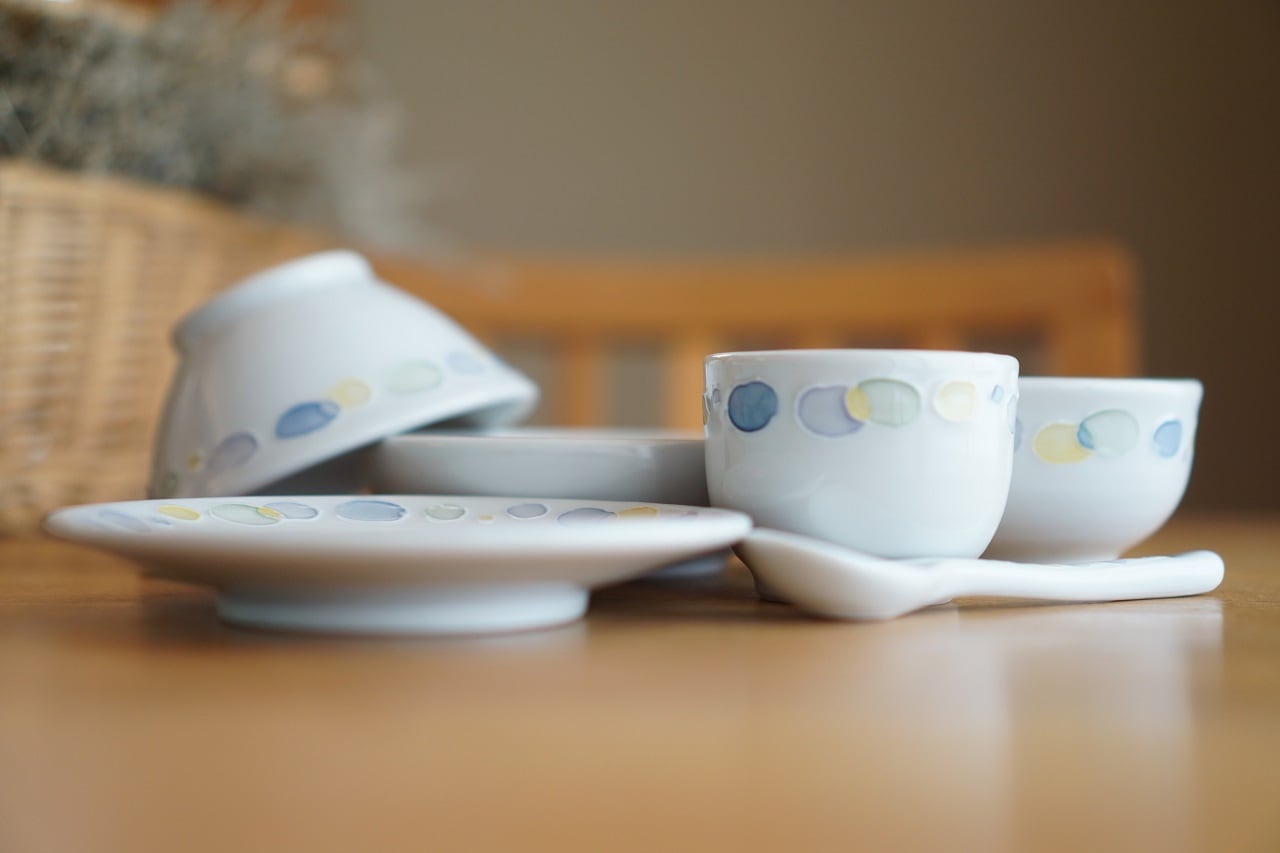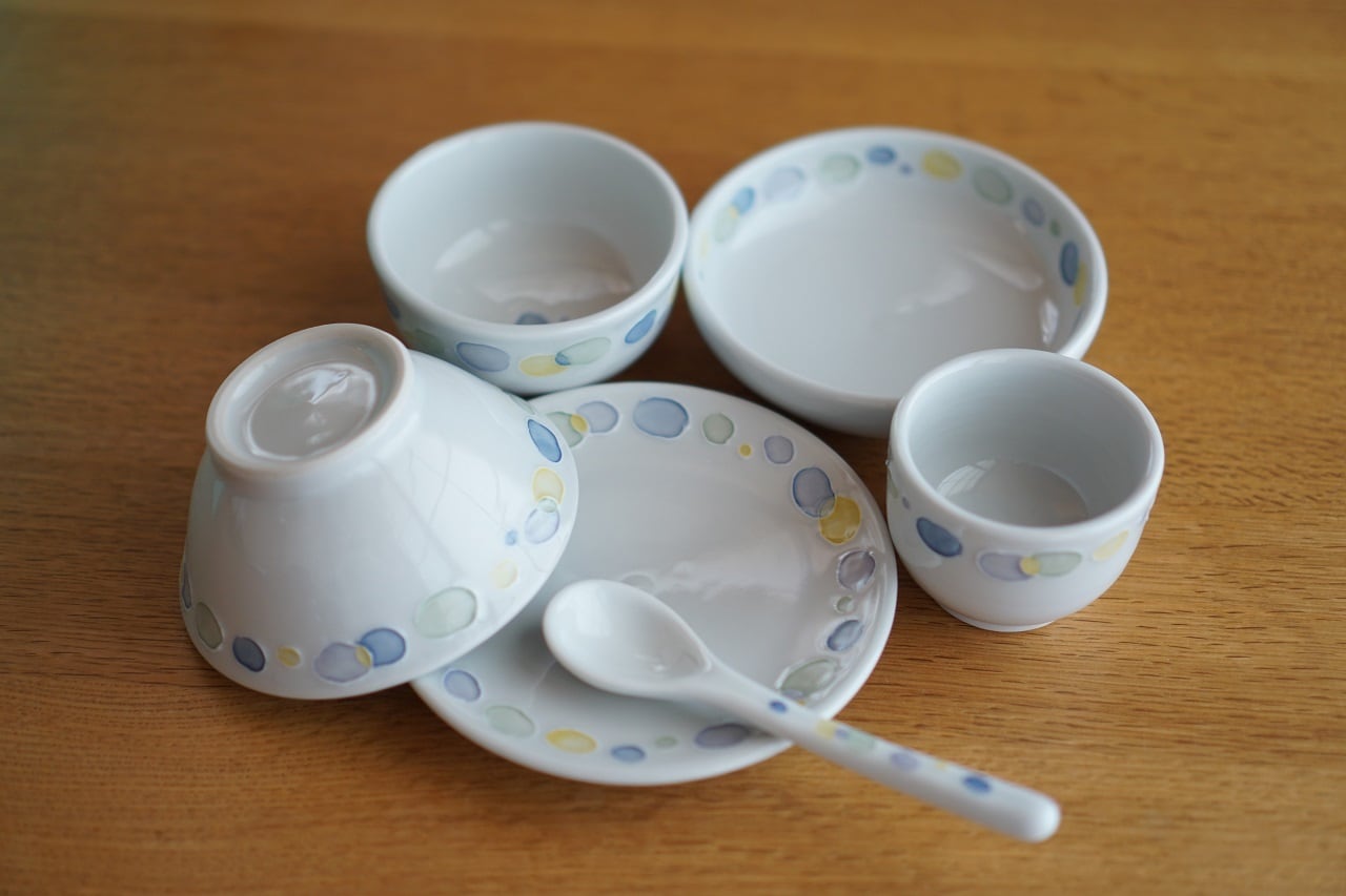 一式の器で食べさせる(マネ)をさせる儀式です。