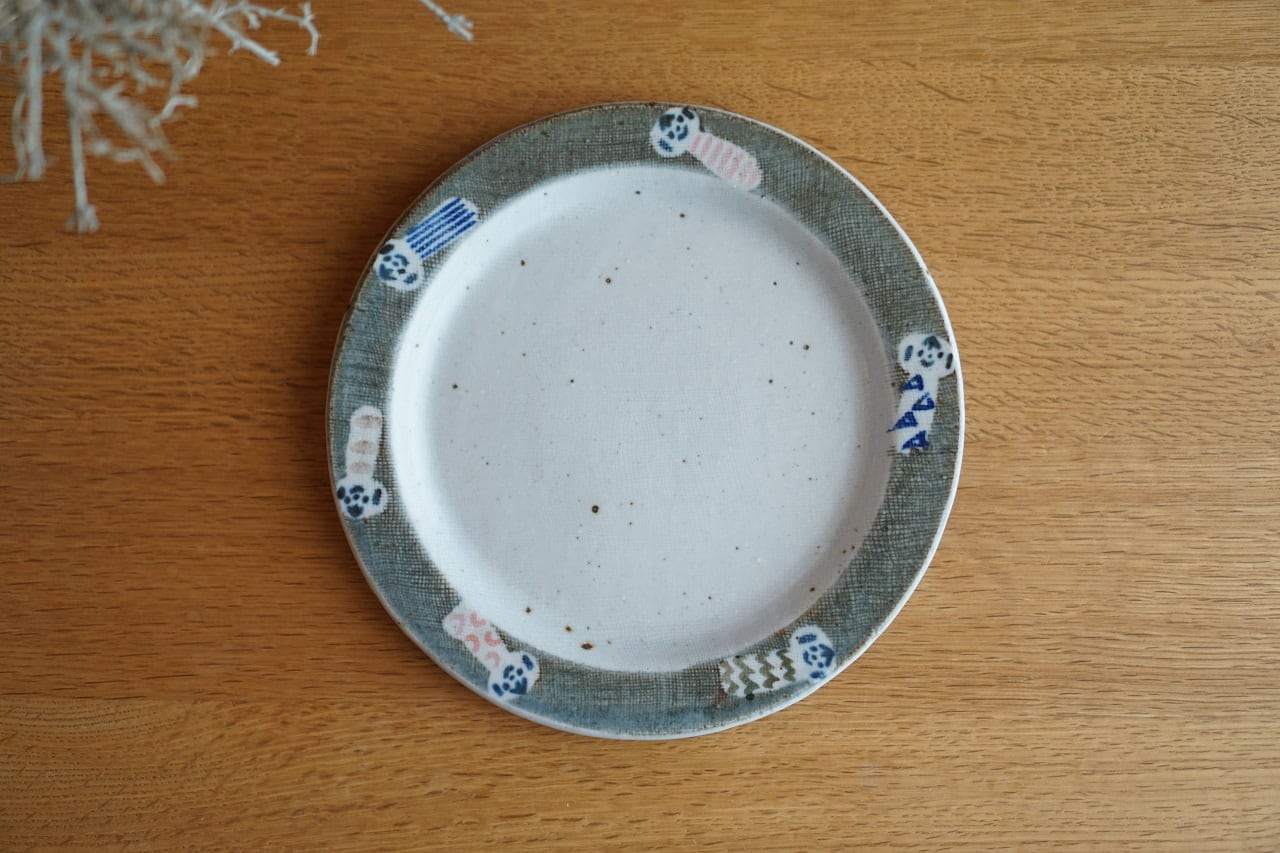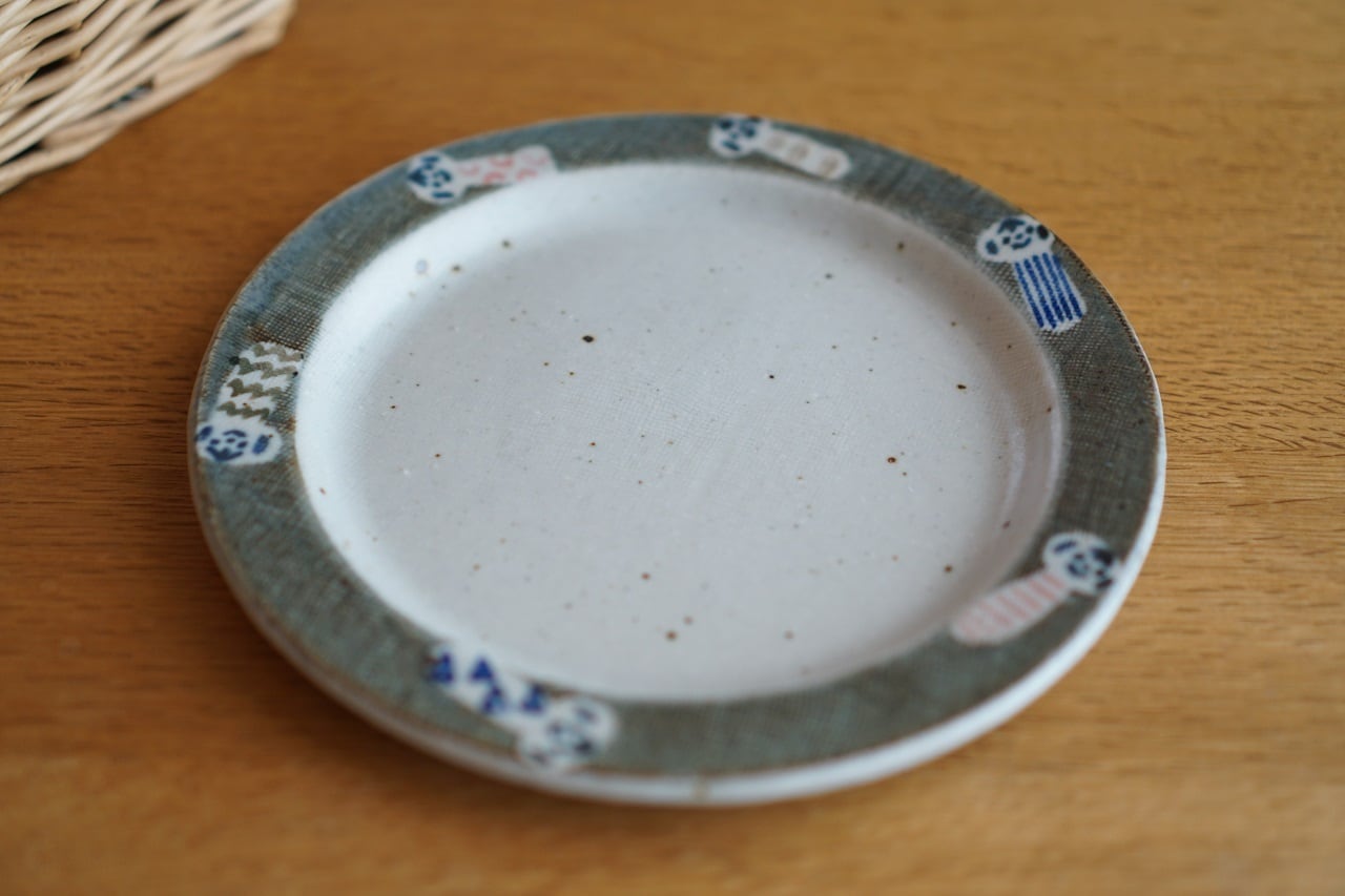 砥部焼/リム付皿(大)/民芸コケシ/森陶房kaori