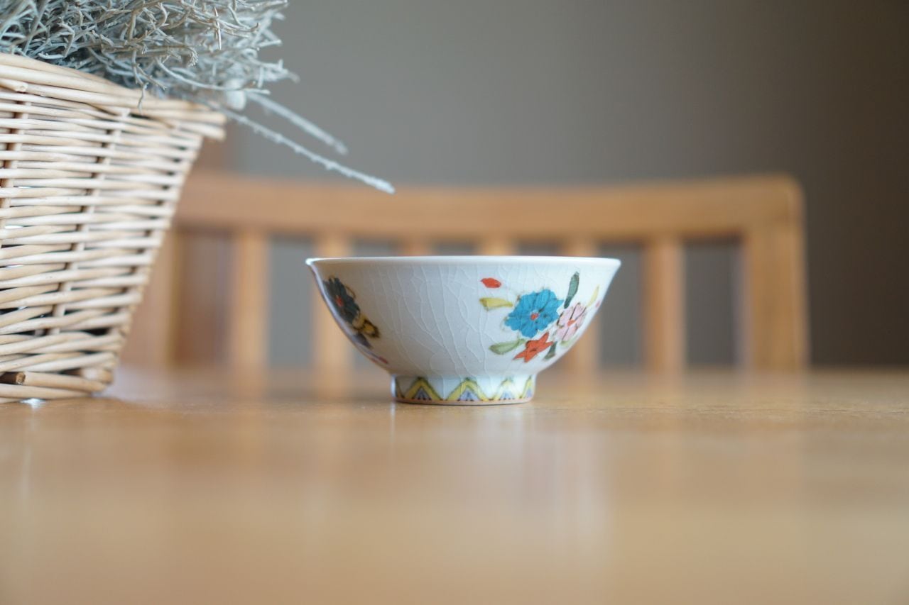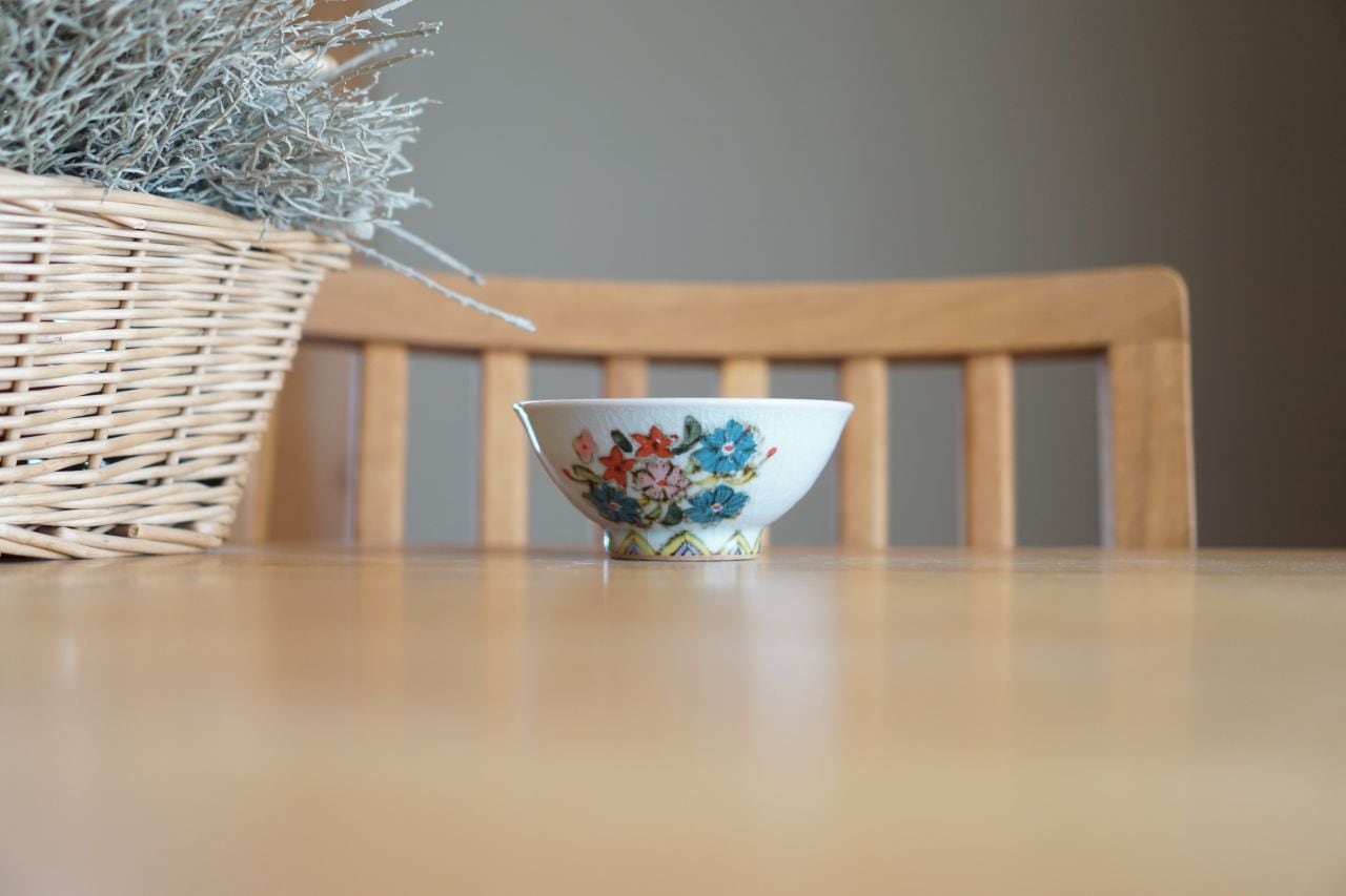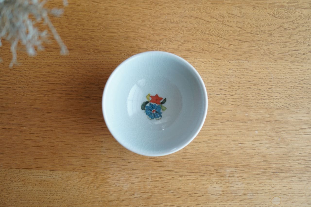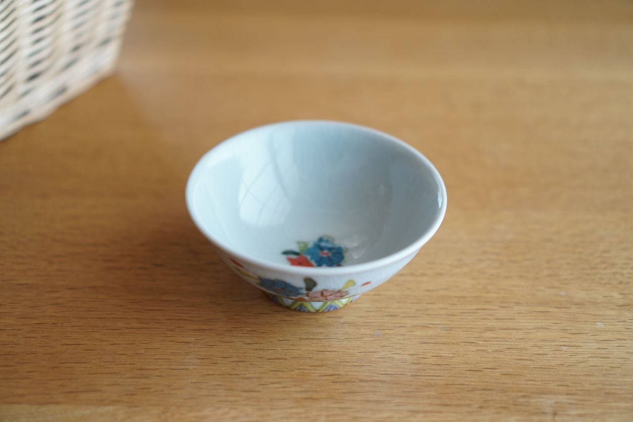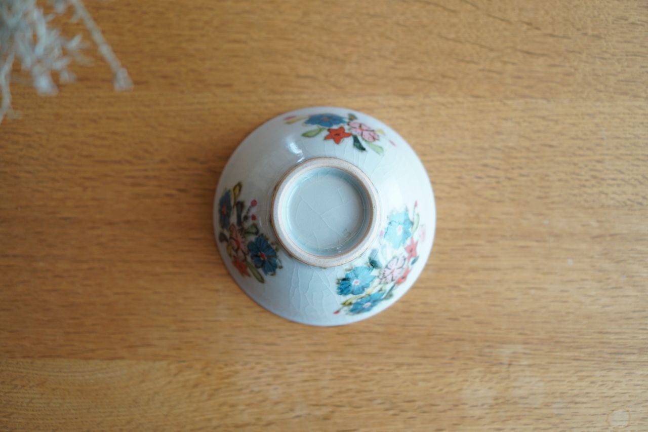 砥部焼/茶碗(小)/印判色絵花/皐月窯